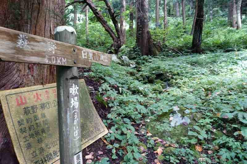 細野口(旧国道駐車地点)8:40〜表参道標柱9:40〜表参道口駐車場10:17-28〜白鷹山10:45〜萩野口分岐11:10〜むじな御所分岐11:40〜林道分岐11:50〜駐車地点12:15