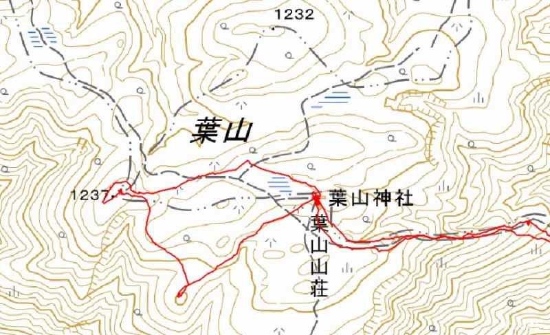 葉山森林公園7:40〜葉山山荘10:20〜1237m峰10:30〜奥ノ院10:50〜葉山山荘11:10-20〜葉山森林公園13:00