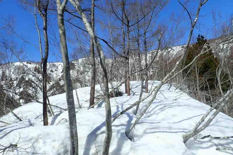 左手に奥ノ院、中央奥に西吾妻山、天元台スキー場など(1237m峰から)